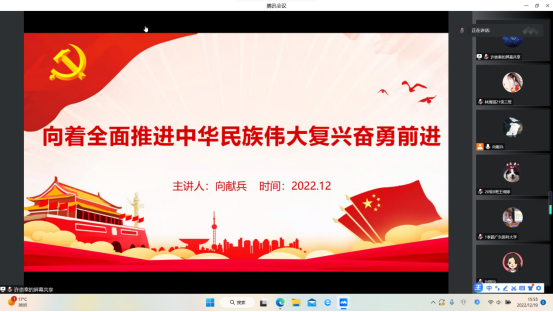 为了深入学习贯彻党的二十大精神,全面学习贯彻习近平总书记关于教育的重要论述,进一步加强我院全体教工和学生党员、入党积极分子的政治理论学习,提高师生的政治理论水平和政治素养,筑牢理想信念根基。12月19号下午,学校党委副书记、纪委书记、广东省监委驻广东医科大学监察专员向献兵通过线上的方式为英国365集团师生作题为《向着全面推进中华民族伟大复兴奋勇前进》的思政课。思政课由学院党委副书记许崇泰主持,学院全体教职工及学生党员、积极分子代表250余人参加。