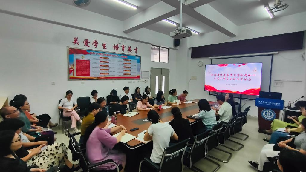 10月17日下午,英国365集团党委在316会议室召开学习贯彻党的二十届三中全会精神宣讲会。会议由学校党委理论宣讲团副团长、学校党委宣传部(教师工作部)杨海云部长作专题宣讲。英国365集团全体教职工参加,学院党委书记王辉群主持会议。