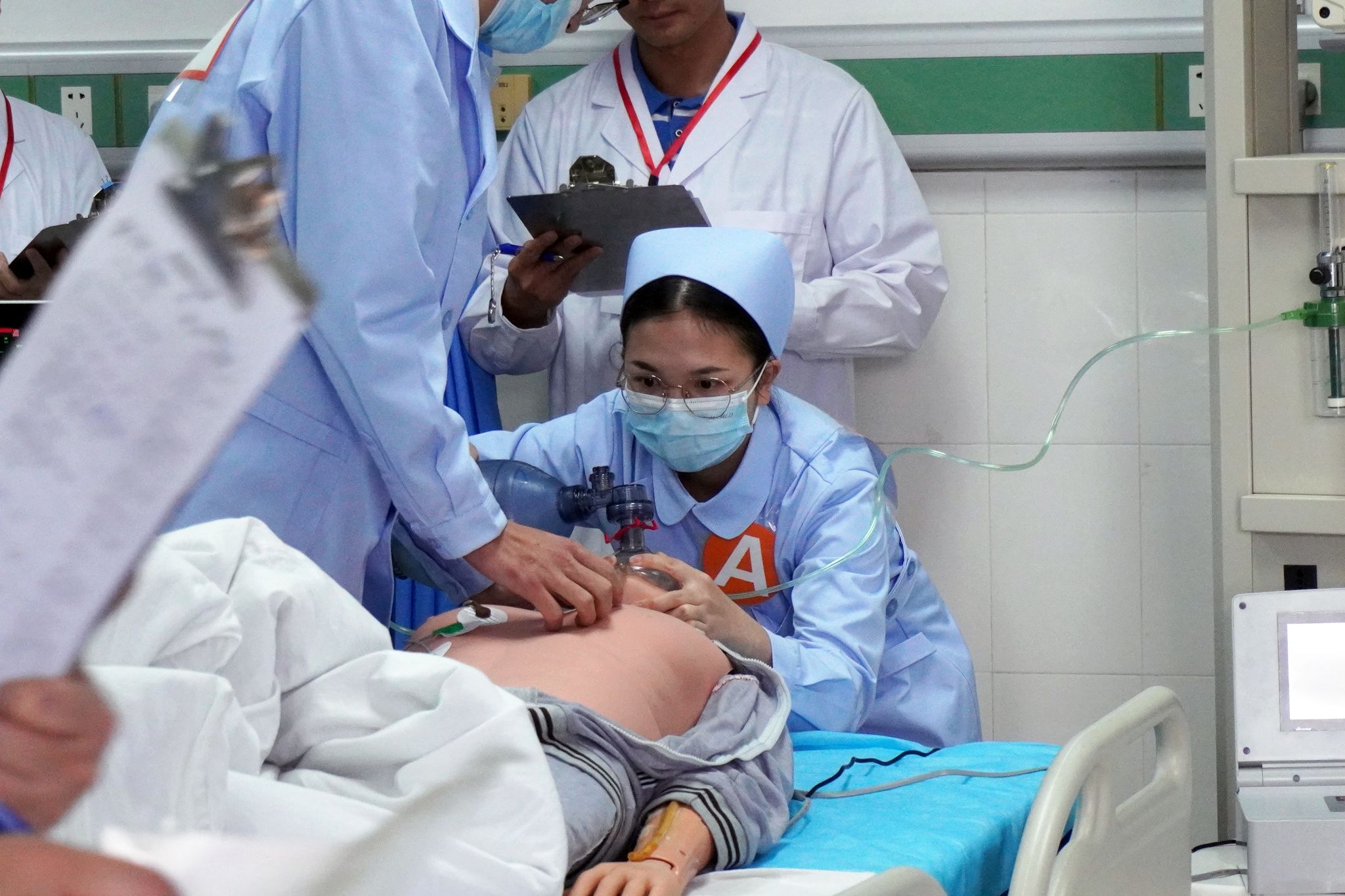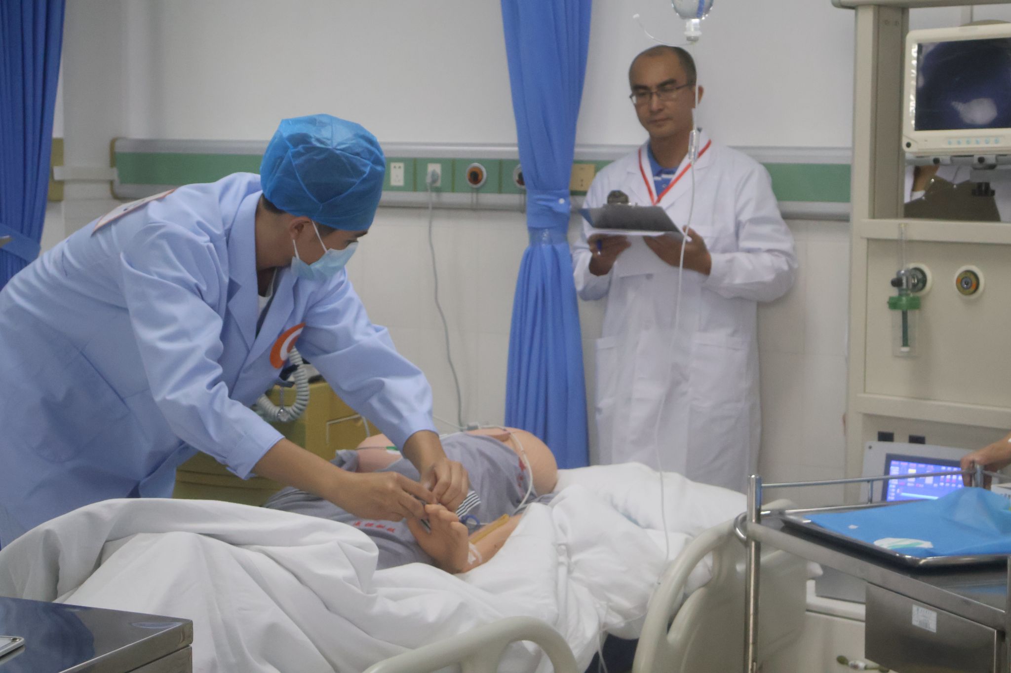 决赛为单站式考核,以患者发生突发心跳呼吸骤停为案例,选手在20分钟内根据情境演变,进行护理评估与判断、制定抢救护理措施,实施急救技能操作等,并根据病情进行静脉输液、心电监护和心肺复苏等急救技能操作,重点考核参赛选手的知识应用能力、临床应变能力、综合分析与判断能力、操作执行力、人文关怀能力、护患沟通的能力及护理安全意识等。