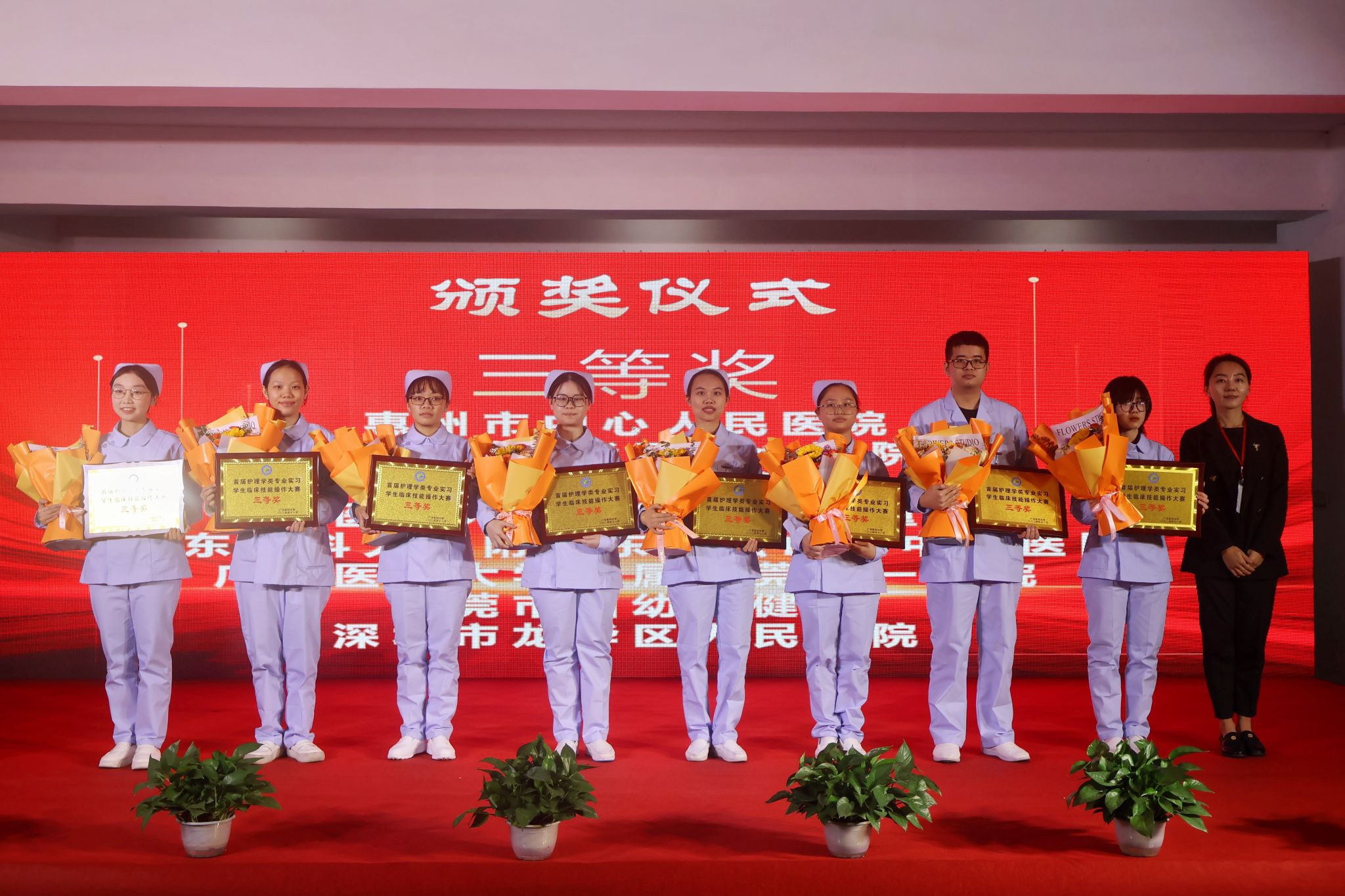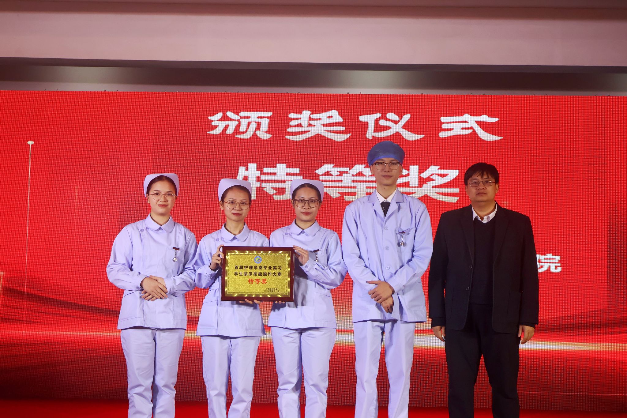 闭幕式由英国365集团党委副书记刘吏婷主持。大赛裁判长、英国365集团副院长王芳作点评。她肯定了选手在大赛中表现出来的竞技精神、人文关怀意识、查对意识、合作意识,重点分析了选手在临床护理思维、应急应变能力等方面存在的不足,鼓励学生努力成为“理论基础扎实、实践能力突出、人文素养厚实”的高素质应用型护理人才才。