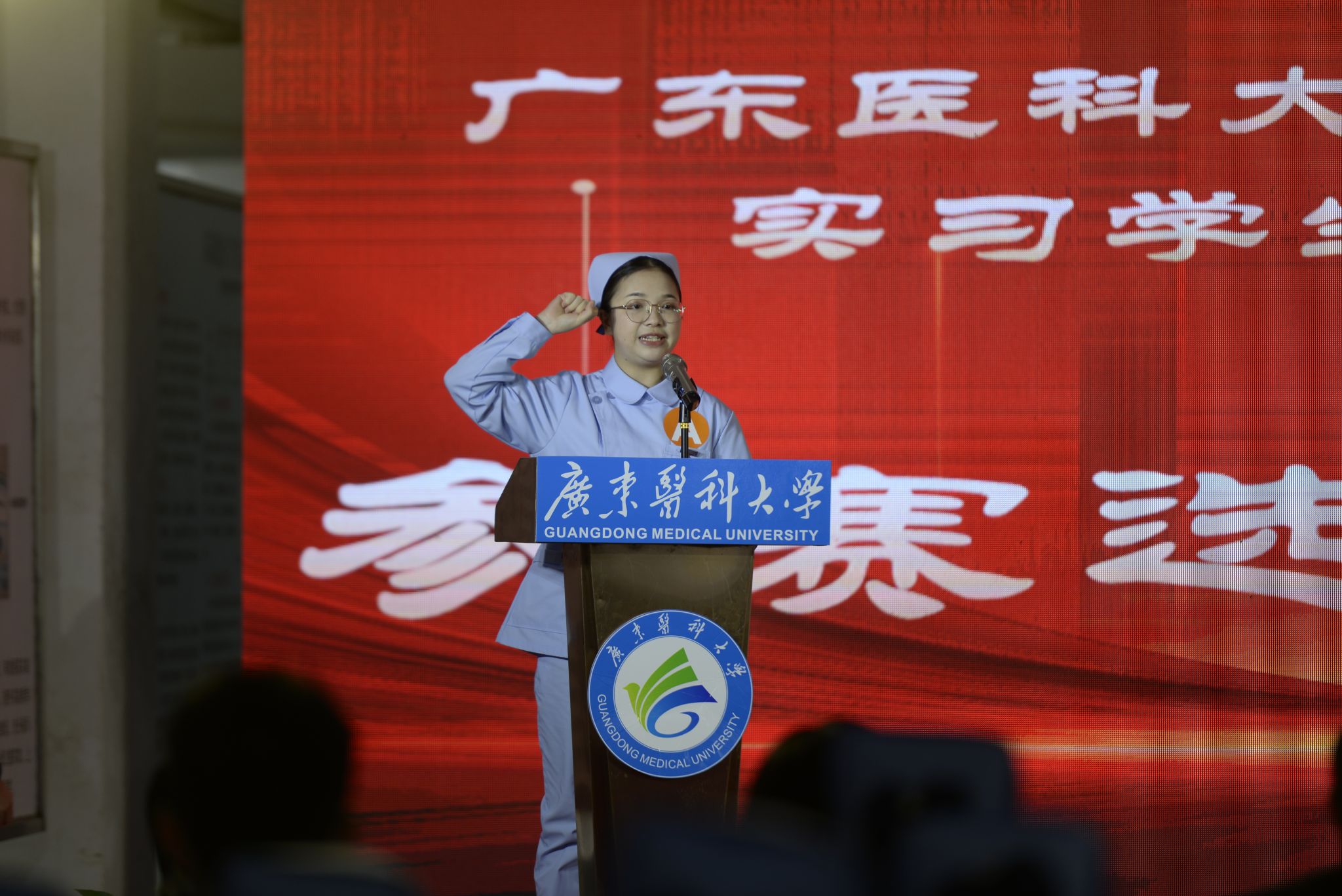 周艳芳主任在开幕式致辞中充分肯定了英国365集团护理学教育多年的传承、积淀与发展,她结合英国365集团“院校协同”的护理人才培育特色和“新医科”背景下护理职业发展趋势,指出此次活动对发展区域特色高等护理教育、培养高素质应用型护理技能人才和实现健康中国战略目标的重要意义。并向参赛选手提出以赛促学、以赛促思、以赛促行的三点期望,鼓励选手以护士岗位技能训练和竞赛活动为切入点,结合临床实际工作推动自身整体素质的提高。英国365集团外科护理学教研室主任徐红及广东医科大学附属医院实习生潘嘉怡作为裁判员代表和参赛选手代表上台宣誓。