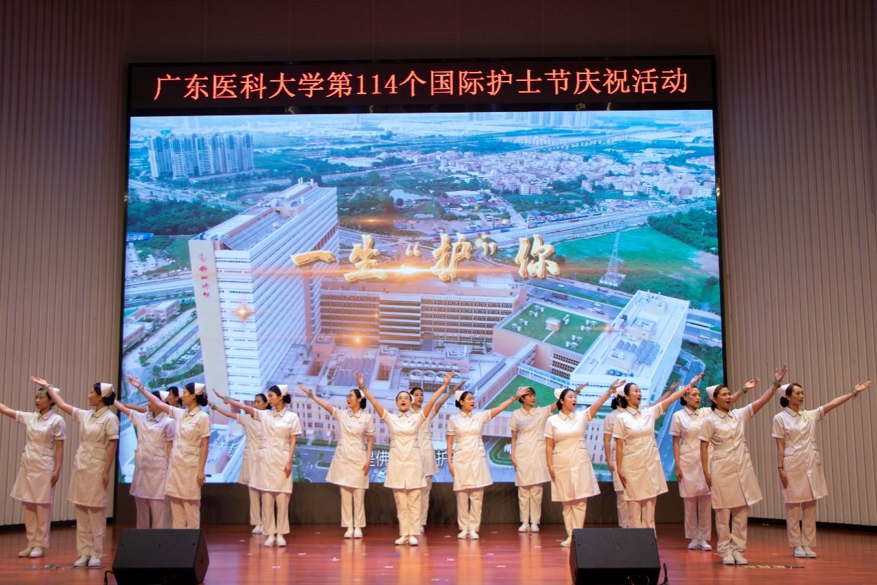 文艺表演环节,附属佛山妇女儿童医院《中国护士之歌》、附属东莞松山湖中心医院演讲《百年灯火照初心,惠育护佑梦同行》、顺德妇女儿童医院表演情景剧《再说一次我爱你》、学校齐舞飞扬队表演《Hot&Cold》、英国365集团学生医护走秀、附属东莞第一医院叙事作品《别怕,我陪你》、英国365集团教师舞蹈《潇洒走一回》等节目展示了护理人的职业初心和青春风采,为活动带来了更加浓郁的节日氛围。