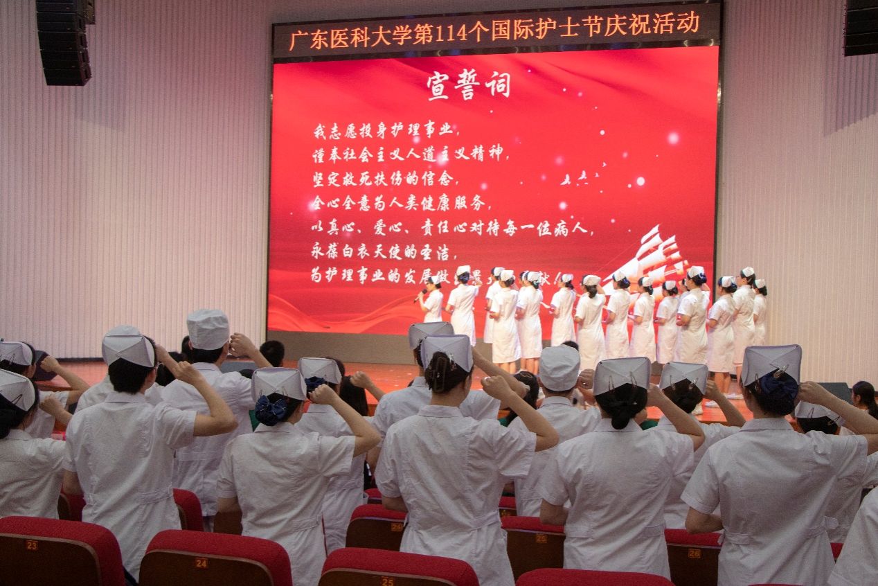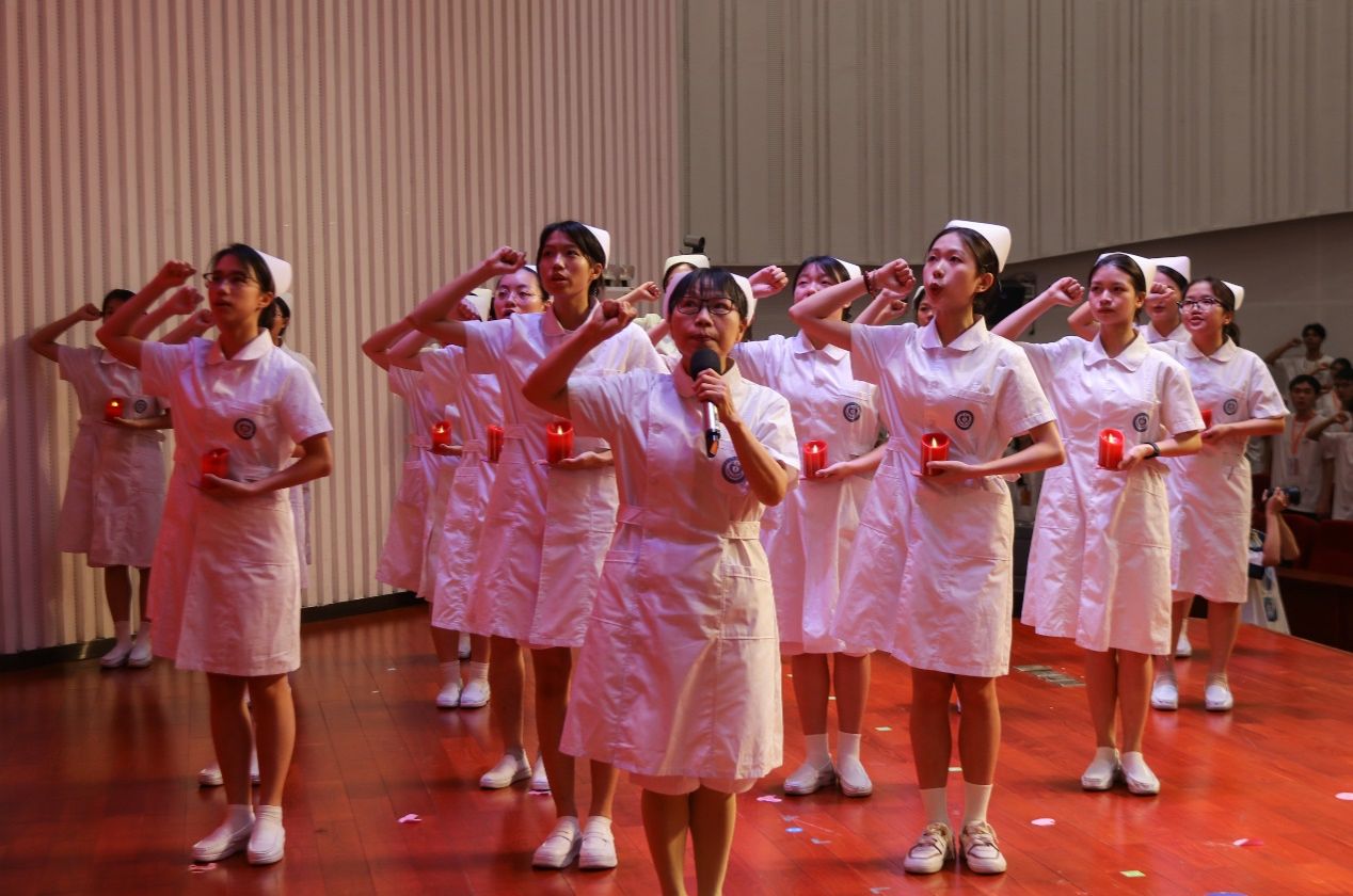 5月10日晚,学院在东莞校区图书馆报告厅举行第114个国际护士节“护生授帽仪式”及文艺表演活动。佟矿在致辞中强调,作为培养护理人才的重要基地,学校一代代护理人始终秉承“立志立德,求真求精”的校训与“明德、励学、仁爱、笃行”的院训,累计培养了10380名专业技能扎实、职业道德高尚的护理人才,她们默默守护着病患的生命健康,赢得了广泛的社会赞誉。护理是以生命守护生命的崇高职业,希望护生们在未来的职业生涯中,用专业筑牢安全防线,用爱心化解疾痛苦楚,用智慧推动护理发展。