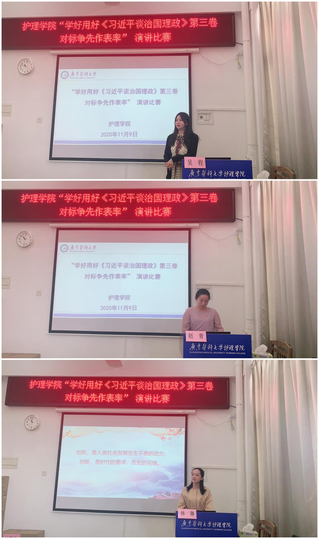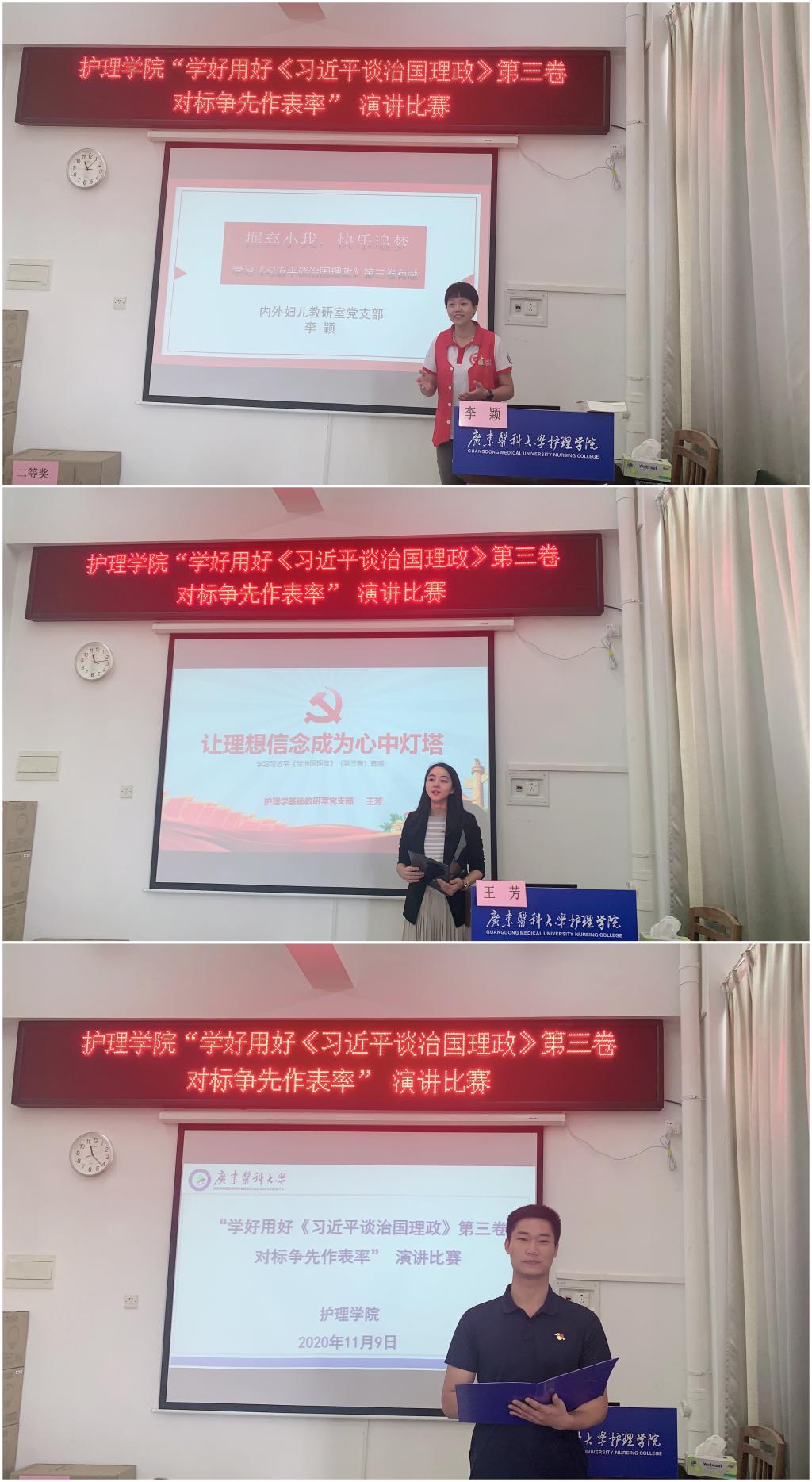 本次比赛,来自3个基层党支部6名教师党员参赛。各位参赛选手从不同的角度深刻、全面、精彩分享个人学习心得,从吴程老师“大”国“大”党的样子到赵青老师“为了人民,不负人民”再到孙超老师 “大局”领航 “改革”扬帆,讴歌党的伟大事业、同抒爱国之情、共立担当之志;从李颖老师 “摒弃小我,快乐追梦 ”到王芳老师“让理想信念成为心中灯塔 ”再到林琳老师“加强科技创新,推动护理学科快速发展”,讴歌抗疫英雄最美逆行、不计生死的气概,立志立足学科优势、发挥个人专业优势、服务地方人民。各位选手声情并茂的演讲时而慷慨激昂,时而舒缓动情,给学院全体党员带来一次又一次精神上的洗礼,引起强烈震撼和共鸣。