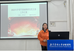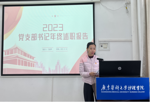 随后,护理学基础教研室党支部书记蔡宏亚和内外妇儿护理学教研室党支部书记林琳依次述职。蔡宏亚从开展主题党日活动,理论学习,“三会一课”三个方面进行汇报,着重讲述了党支部邀请学校党委副书记、纪委书记、 广东省监委驻广东医科大学监察专员向献兵讲微党课的主题党日活动。内外妇儿护理学教研室党支部书记林琳,从坚持理论学习,党支部建设,“三会一课”的落实情况进行汇报。重点分享了党支部利用网络学习平台观看示范微党课以及党支部和松山湖铁骑大队开展急救培训的特色主题党日活动。