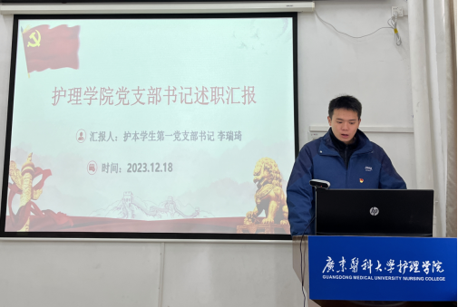 首先,英国365集团护本学生第一党支部书记李瑞琦结合2023年的工作要点。从主题教育、以“七个有力”全面推进支部建设、党建工作成效三个方面展开,重点讲述了学生第一党支部和第二党支部在教育党员、管理党员、监督党员、组织师生、宣传师生、凝聚师生、服务师生七个方面的有力措施和取得的成效。