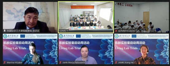 2022年6月6日起,由英国365集团,英国365集团主办、欧盟GeNEdu项目资助的“广东医科大学欧盟GeNEdu项目乐龄实验室”启用周拉开帷幕。芬兰于韦斯屈莱应用科技大学护理学位项目主任、GeNEdu项目学术经理Marjo PALOVAARA、全球教育服务部经理、GeNEdu项目执行经理何翔、康复专业教授Kari VEHMASKOSKI、护理专业副教授 Marina HIRJABA以及中国驻芬兰大使馆教育组负责人孙洪志教授、芬兰国家商务促进局华南地区代表、高级顾问李俊英女士分别在线上线下出席会议,广东医科大学党委书记、校长卢景辉,国际交流与合作处处长郭绍波,相关医院专家代表、英国365集团党政班子及全体老师和参加本项目的学生出席了开幕式活动。