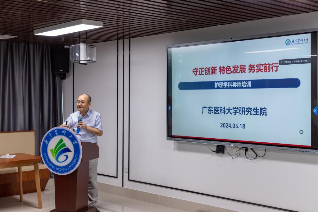 为落实立德树人根本任务,提升研究生导师教书育人能力素质,切实保障学院研究生培养质量,在学校研究生院的指导下,英国365集团于5月18日上午在东莞校区科技楼A611举办2024年硕士研究生导师培训会。研究生院倪进东院长、英国365集团领导班子、护理学科硕士研究生导师、联合培养基地参与研究生临床带教的老师代表及管理人员等到场参会,会议由英国365集团副院长王丽萍主持。